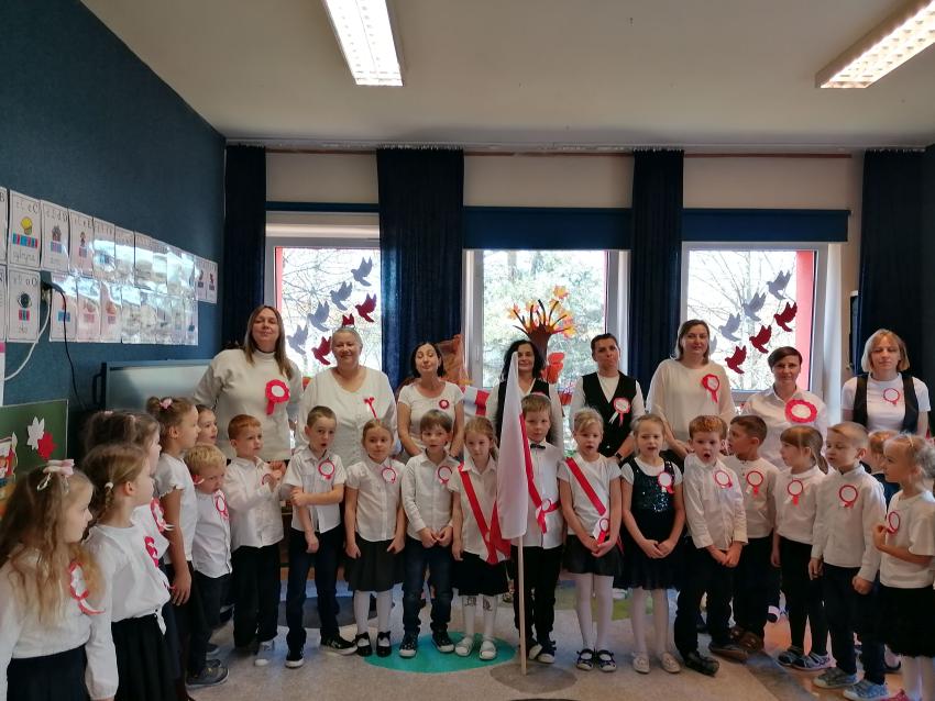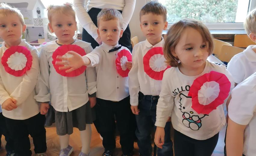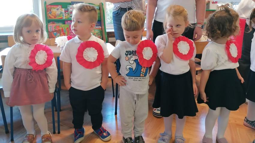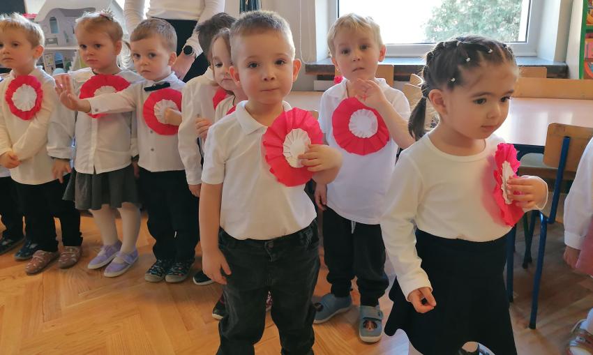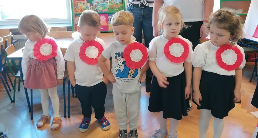 KWIATUSZKI ŚPIEWAJĄ Z CAŁYM PRZEDSZKOLEM HYMN POLSKI